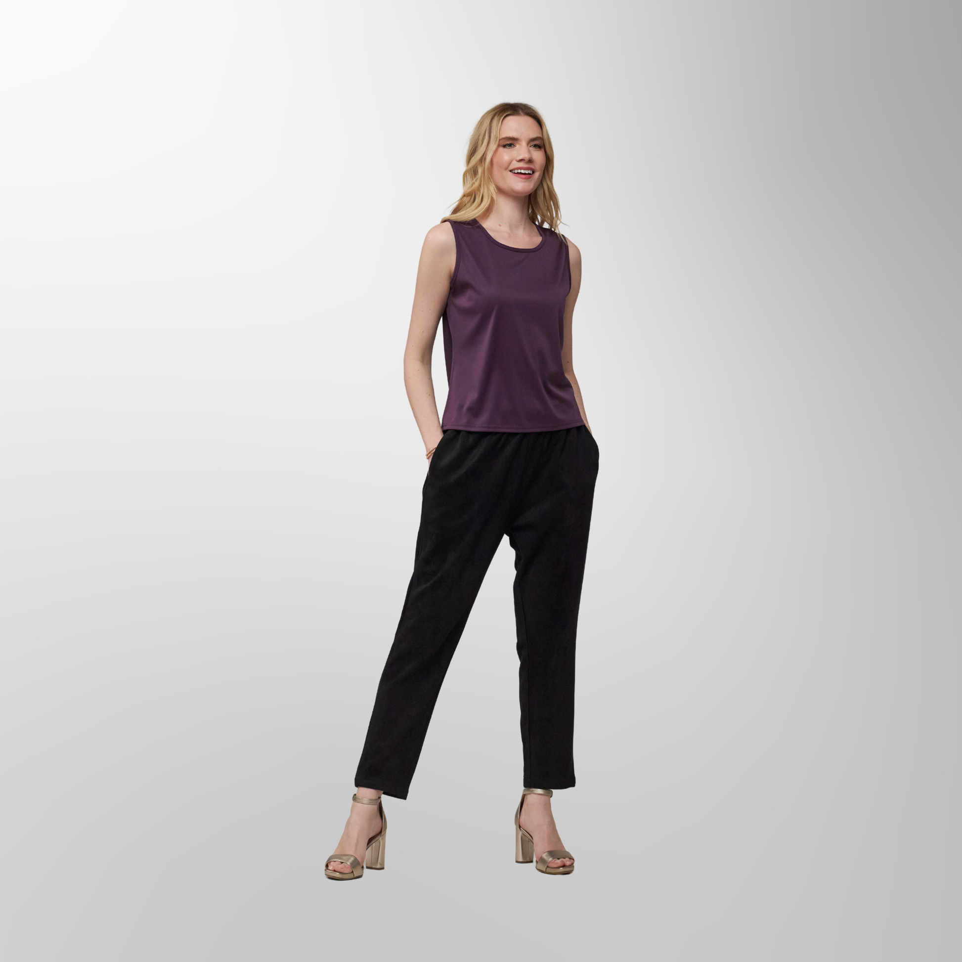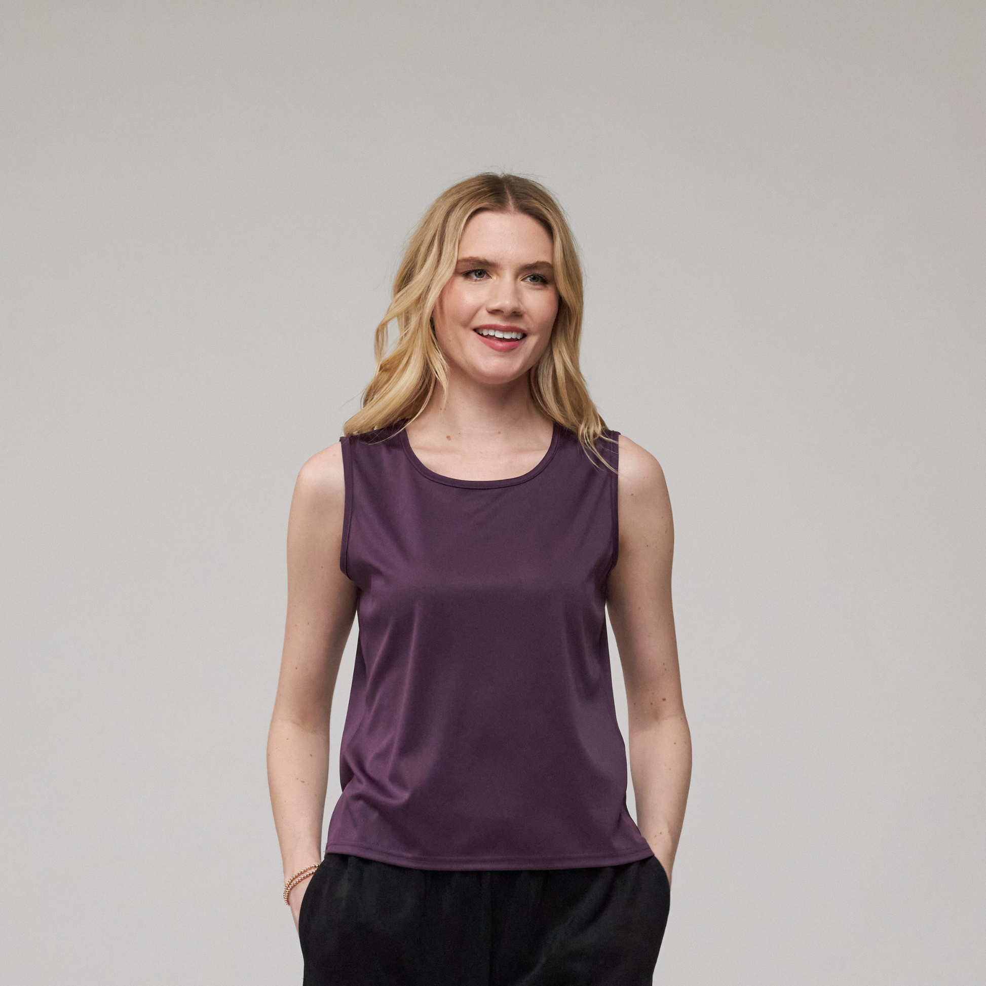 Crafted for the woman who values effortless dressing, the Classic Length Tank Top combines style with practicality. Its smooth, form-fitting cut gently shapes your body without clinging, making it a flattering choice for all body types. The slightly longer length ensures comfortable coverage, allowing it to stay in place when layered under jackets or shirts. Whether paired with tailored pants for a refined look or jeans for casual ease, this top transitions seamlessly between work, weekend, and everything in between.